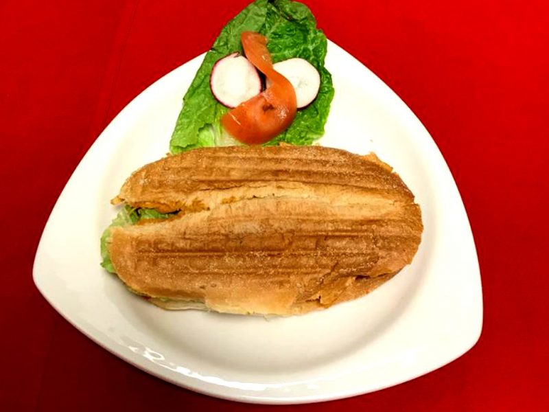 Bread, beans, cheese, lettuce, tomatoes, avocado, mayonnaise, jalapeños